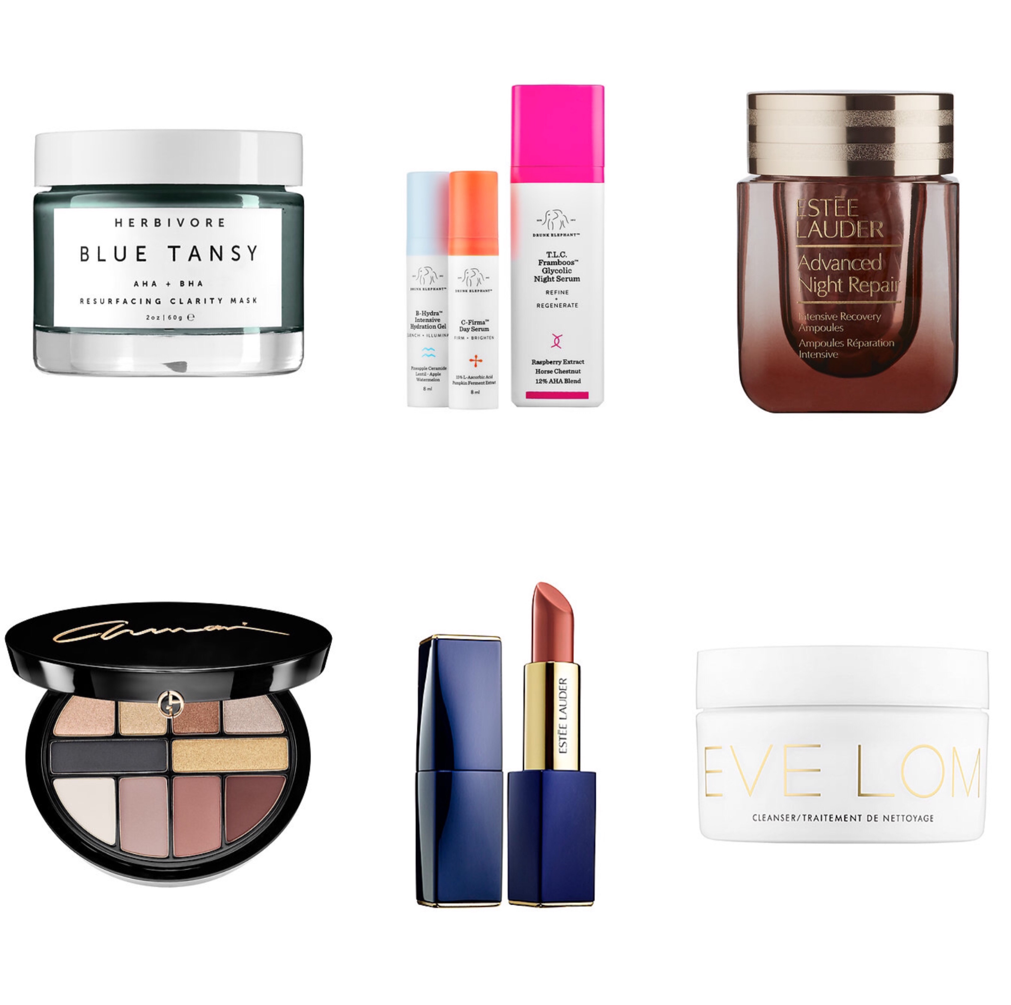 - Top Row- Estee Lauder Advanced Night Repair Essentials, ($92.00) Drunk Elephant Let' s BClear, ($82.00) Herbivore Rose Hibiscus Coconut Water Hydrating Face Mist, ($32.00)